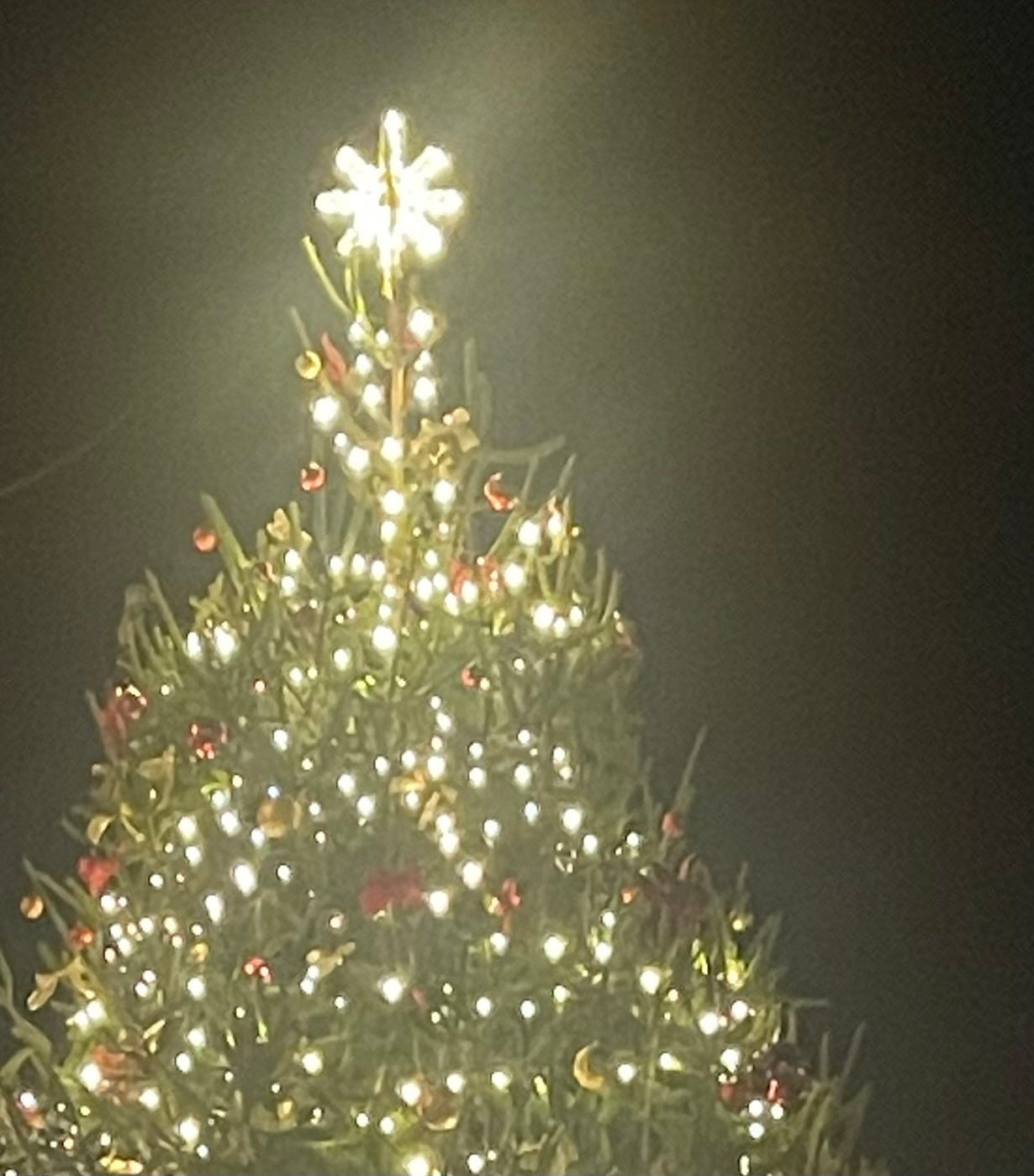 This post sat in draft while I joined the not at all exclusive club of people who caught Covid or flu this festive season. But its about a moment that moved me and still does today. And its about this picture, showing the crowning lights of a public Christmas tree, of the sort that go up across Britain at this time of year. On a mid-morning last month, I walked past a team of three (at least) council workers, layered up against a bitterly cold day, setting the tree in its place. Then I saw them again, late at night, just as they turned the lights on. And of course it looked so pretty, I let out a “Yay!” and smiled at these workers and they grinned right back, one of them raising his winter-padded arm in a cheery little wave.